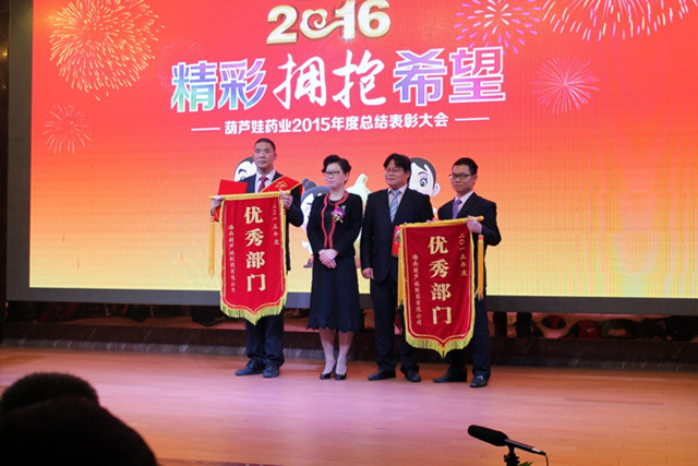 在2015年度工作中,海口保税基地制造部和公司质量部获得优秀部门称号,海口保税基地制造部经理万保坤先生荣获2015年优秀管理者殊荣。尊龙凯时集团董事长刘景萍博士为获奖部门和获奖者颁奖