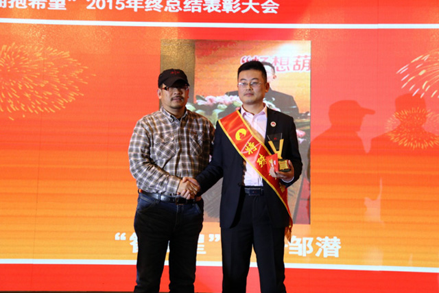 过去一年,公司继续保持强劲的发展势头,销售业绩同比增长18.2%。尊龙凯时2015年的精彩是我们每个部门、每个团队、每个尊龙凯时人团结一致、努力奋斗与辛勤付出的结果。付出必有回报, 2015年涌现了尊龙凯时人的很多优秀代表,公司授予他们“尊龙凯时天使”、“尊龙凯时之星”等荣誉称号,其中邹潜和余旭求荣获“特殊贡献奖”。浙江尊龙凯时有限公司常务副总经理汤琪波为五位“尊龙凯时天使”颁奖